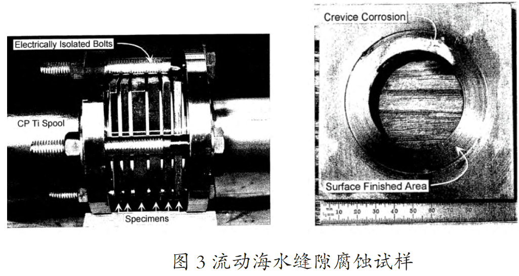 (2)在静态和流动海水中,654SMO、C22、686、59、C2000、Ti-45Nb、Ultimet 和25 等许多合金表现出完全的耐缝隙腐蚀性能;